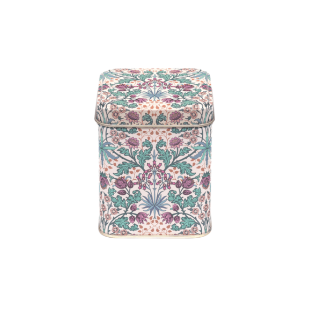 This is a decorative storage caddy featuring a classic design by William Morris.