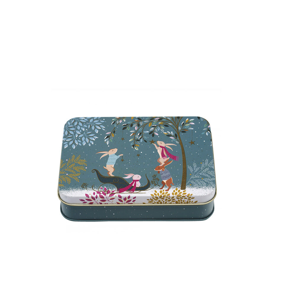 Imagery created by artist Sara Miller. A special treat awaits, with woodland animals amid a magical winter forest.