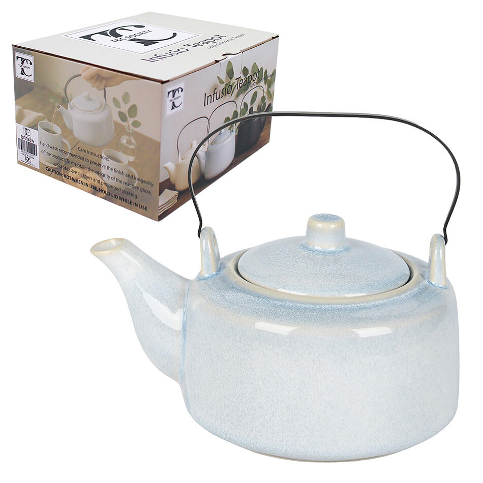 Crafted from ceramic with a unique reactive glaze. Each teapot glaze is a one-of-a-kind; no two are alike.