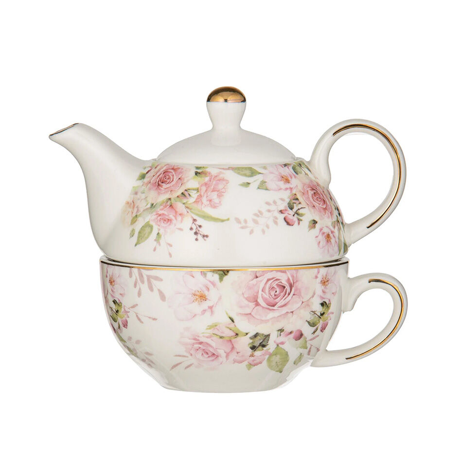 This charming Isabelle collection, Tea for One, offers a modern take on a traditional rose design, featuring a floral bouquet pattern. This lovely pink and green range delights with graceful shapes, gold accents, and delicate detailing, and will be a beautiful addition to your tea-time regime.