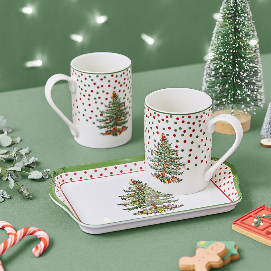 • Set includes 2 mugs & 1 tray